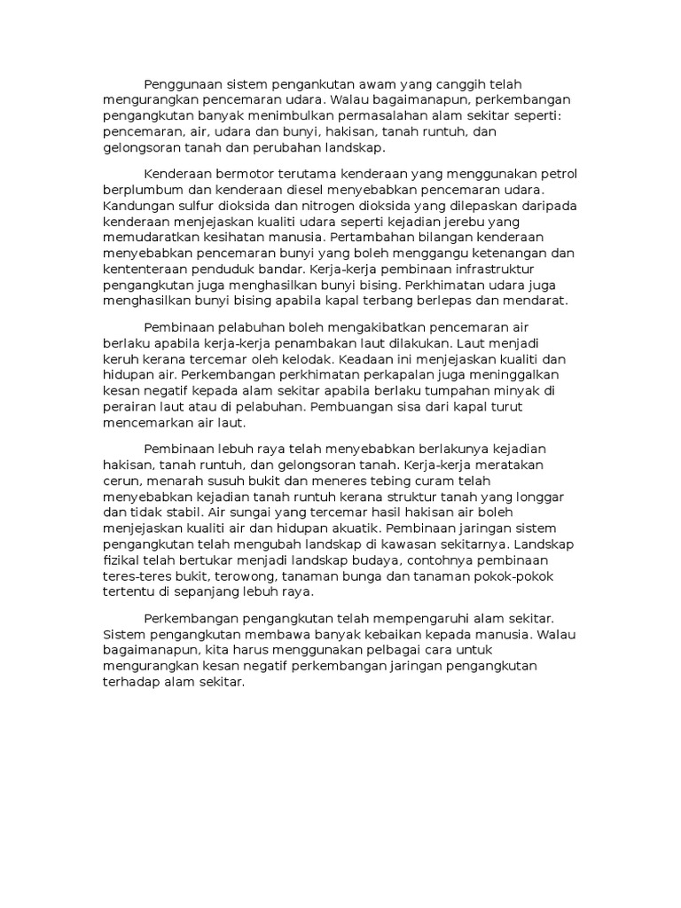 Selain daripada perlu memberi isi-isi penting yang berkaitan pelajar juga perlu menghurai dengan gaya bahasa yang menarik serta betul dari. Netizen Minta Baiki Pengangkutan Awam Dulu. Save Save KESAN PERKEMBANGAN PENGANGKUTAN For Later.